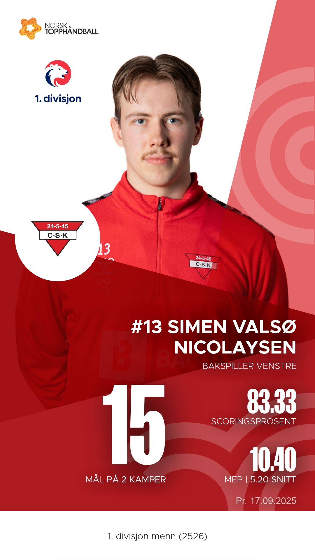For Charlottenlund er det flere spillere å trekke frem. Simen Valsø Nicolaysen har vært en motor i laget så langt med både scoringer og assist, og han har levert som en ekte nøkkelspiller. Julius Veim Hjelmungen har vært en viktig playmaker som styrer angrepsspillet med kloke pasninger og gode innspill, mens Lukas Bjerkgård-Lund har markert seg med både mål og assists fra høyre bak. Disse tre blir helt avgjørende for at vi skal klare å bryte ned Nordstrand-forsvaret.