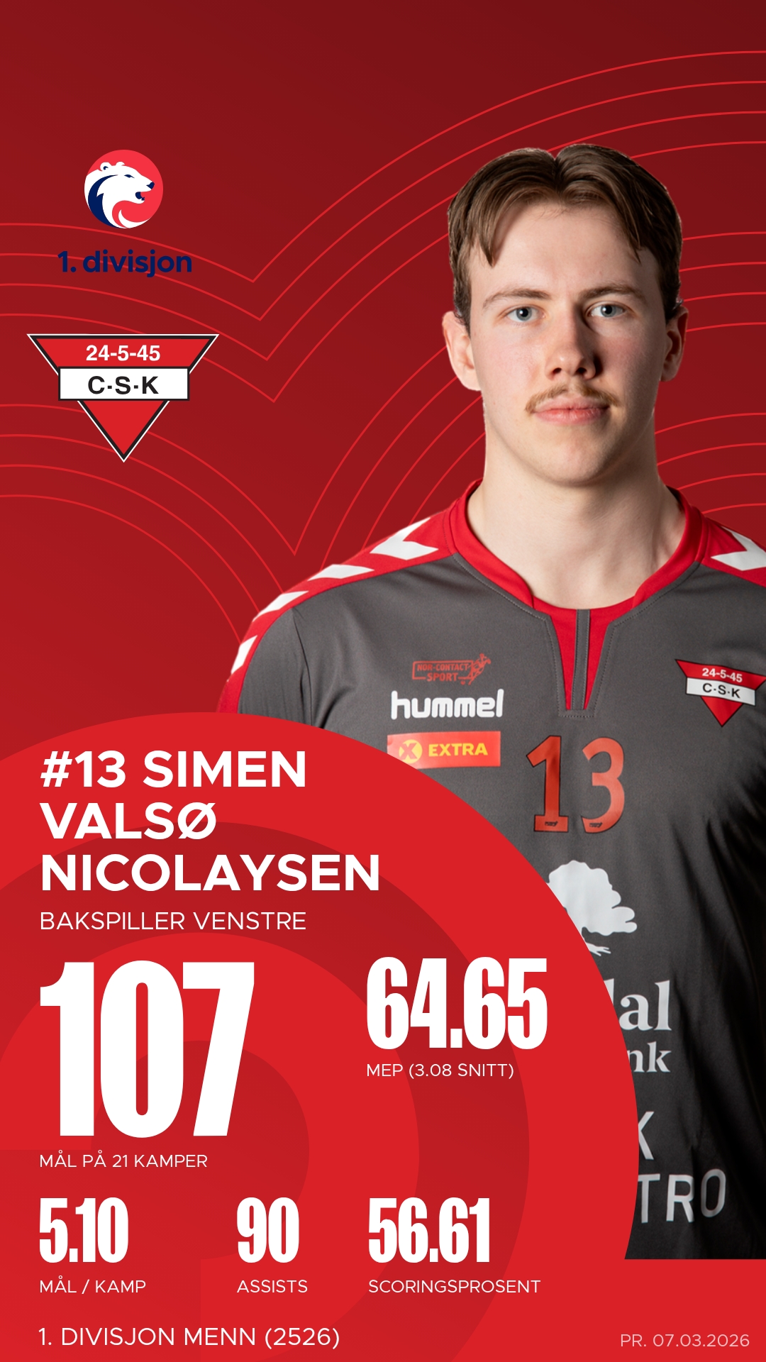 Søndag 15. mars klokken 16.00 er det duket for en ny og viktig kamp i 1. divisjon menn når Bjørnar får besøk av Charlottenlund i Bjørnarhallen. For hjemmelaget handler det om å klore seg fast i divisjonen, mens Charlottenlund kommer til Bergen med blikket rettet oppover på tabellen. Dette er en kamp der bortelaget har alt å vinne – og de vet at poengene her kan bli avgjørende i kampen om kvalikplassene mot REMA 1000-ligaen.